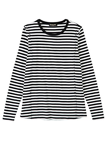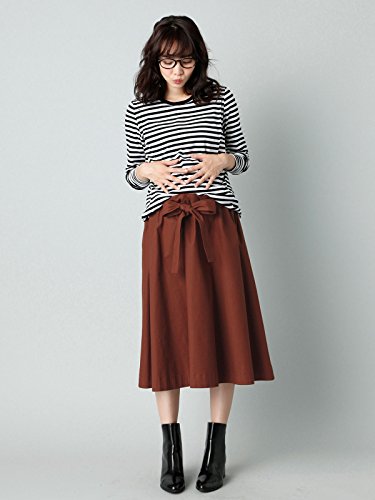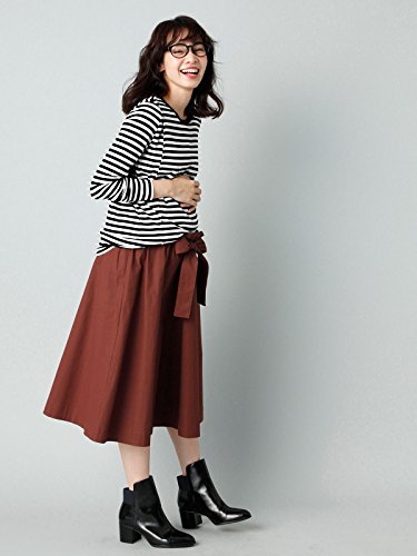 Angeliebe エンジェリーベ マタニティ 授乳口付き 綿混 やわらか フライス クルーネック Tシャツ 妊婦服 産前 産後 長袖 M ~ L ブラック × オフボーダー 22070 22070502