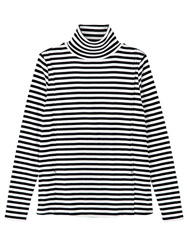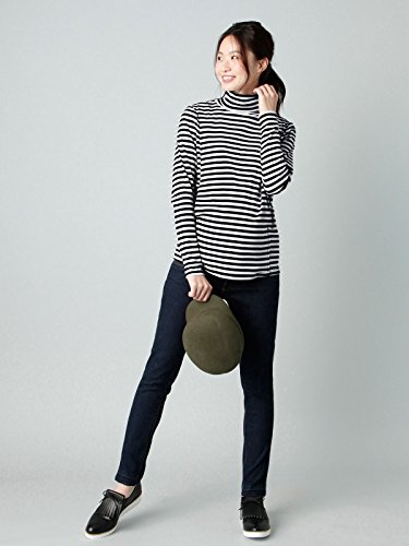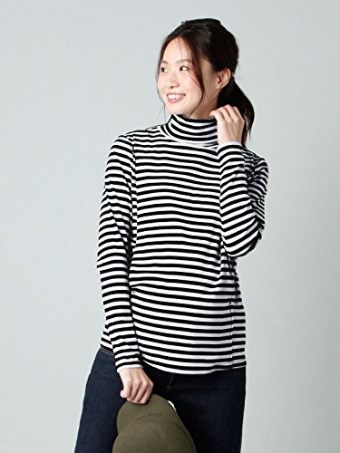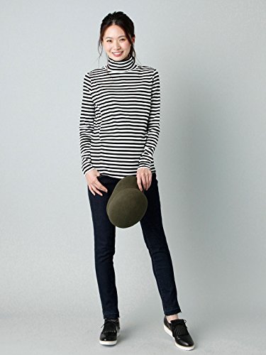 Angeliebe エンジェリーベ マタニティ 授乳口付き 綿混 やわらか フライス タートルネック Tシャツ 妊婦服 産前 産後 長袖 S ~ M ブラック × オフボーダー 22071 22071501