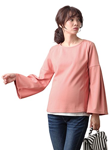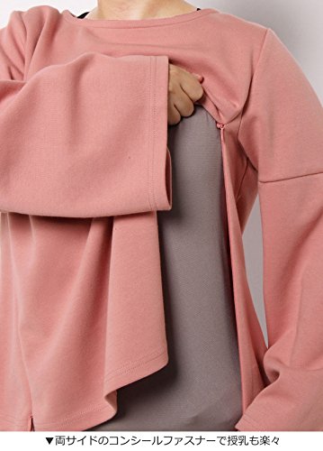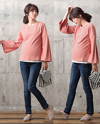 Angeliebe エンジェリーベ マタニティ 授乳口付き フレアスリーブ トップス 妊婦服 産前 産後 長袖 M ~ L ダークピンク 22076 22076302