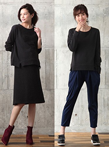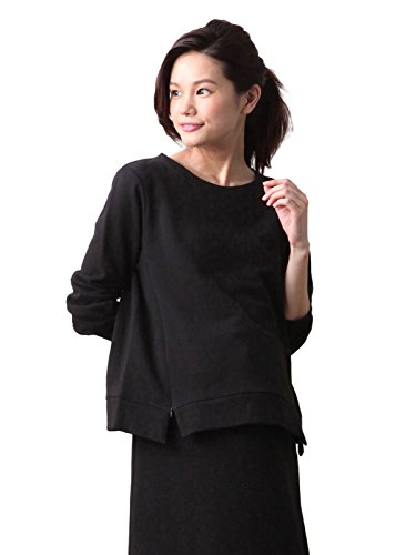 Angeliebe エンジェリーベ マタニティ 授乳口付き ラウンドネック トップス 妊婦服 産前 産後 長袖 S ~ M ブラック 22077 22077301
