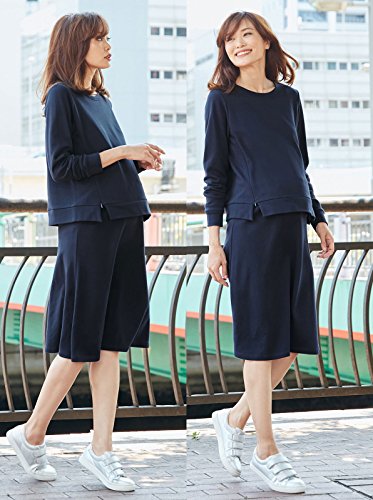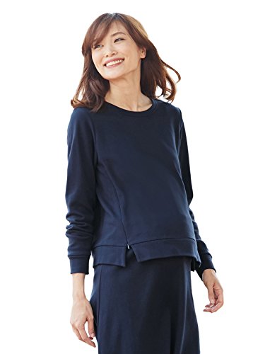 Angeliebe エンジェリーベ マタニティ 授乳口付き ラウンドネック トップス 妊婦服 産前 産後 長袖 S ~ M ネイビー 22077 22077201