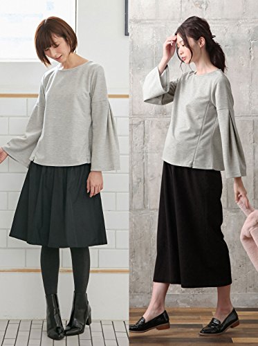 Angeliebe エンジェリーベ マタニティ 授乳口付き フレアスリーブ トップス 妊婦服 産前 産後 長袖 M ~ L 杢 グレー 22076 22076102