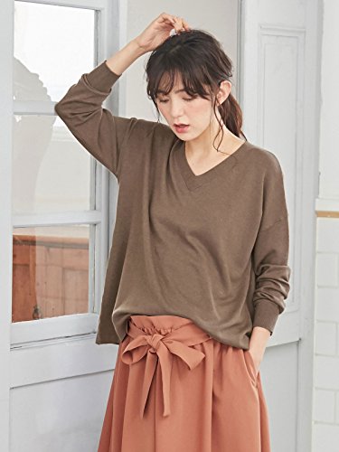 Angeliebe エンジェリーベ マタニティ 授乳しやすい Vネック ニット 妊婦服 産前 産後 長袖 フリー モカ 22160 22160300