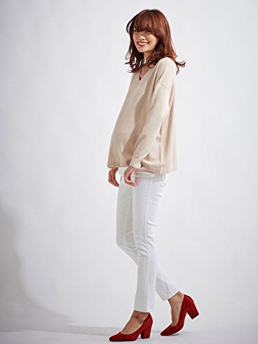 - ●【産前~産後まで使えるVネックニット】なめらか&ふんわりタッチのニット。袖口のリブを長めにしてあるので、腕まくりをした時にやさしくフィット。広めの身幅でお腹が大きくなっても着られます。身幅が広いので身頃をめくって楽に授乳できます。