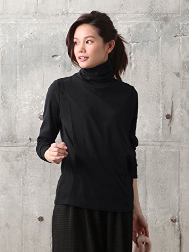 Angeliebe エンジェリーベ 産後 授乳服 綿混 やわらか フライス タートルネック Tシャツ 授乳ウエア 長袖 授乳口付き フリー ブラック 30129 30129100