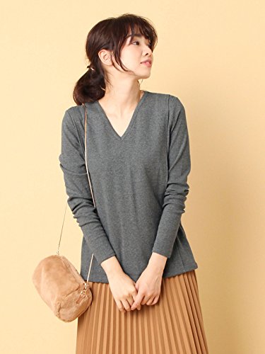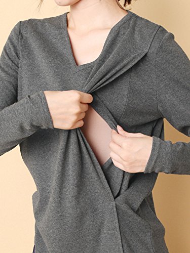 Angeliebe エンジェリーベ 産後 授乳服 綿混 やわらか フライス Vネック Tシャツ 授乳ウエア 長袖 授乳口付き フリー 杢チャコール 30130 30130400