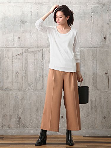 開き具合がキレイなラウンドネックは女性らしい印象。綿混のやわらかフライス素材で、肌触りも抜群です。