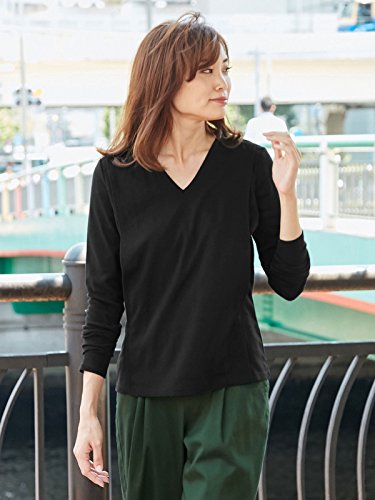 Angeliebe エンジェリーベ 産後 授乳服 綿混 やわらか フライス Vネック Tシャツ 授乳ウエア 長袖 授乳口付き フリー ブラック 30130 30130100