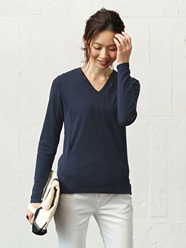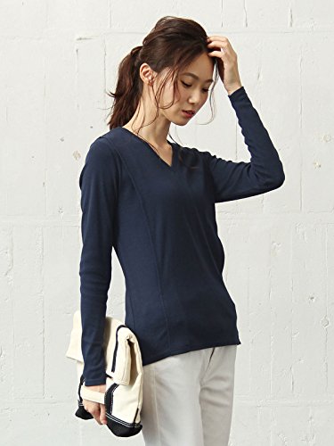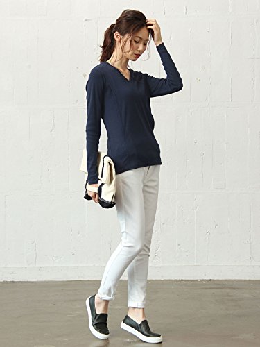 Angeliebe エンジェリーベ 産後 授乳服 綿混 やわらか フライス Vネック Tシャツ 授乳ウエア 長袖 授乳口付き フリー ネイビー 30130 30130300