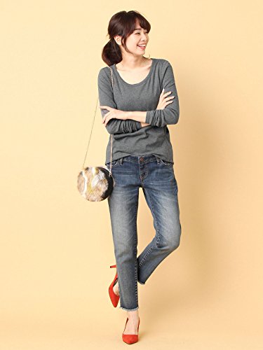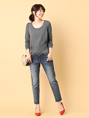 開き具合がキレイなラウンドネックは女性らしい印象。綿混のやわらかフライス素材で、肌触りも抜群です。
