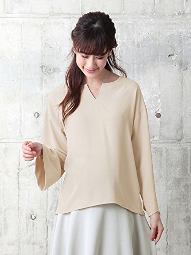 Angeliebe エンジェリーベ マタニティ 授乳口付き スラッシュ ネック ワイドスリーブ トップス 妊婦服 産前 産後 長袖 M ~ L アイボリー 22252 22252102