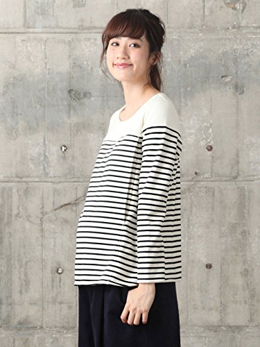 Angeliebe エンジェリーベ マタニティ 授乳口付き あったか ふんわり 裏毛 裏シャギー ボンディング 先染め ボーダー トップス 妊婦服 産前 産後 長袖 M オフ 22096 22096260
