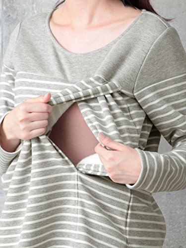 - ●【産前~産後まで使える授乳口付きふんわり裏毛裏シャギーボンディング先染めボーダートップス】合わせやすいカジュアルボーダー。両サイドにスリットタイプの授乳口が付いています。裏はふわふわのシャギー素材。パンツにもスカートにも合わせやすいベーシックなシルエットもポイントです。