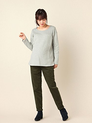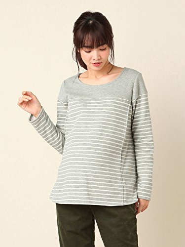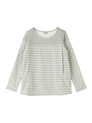 Angeliebe エンジェリーベ マタニティ 授乳口付き あったか ふんわり 裏毛 裏シャギー ボンディング 先染め ボーダー トップス 妊婦服 産前 産後 長袖 M グレー 22096 22096160