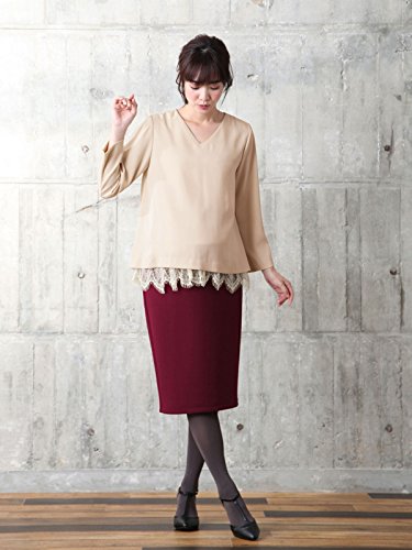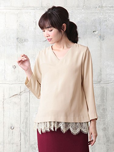 Angeliebe エンジェリーベ マタニティ 授乳口付き レース バックシャン Vネック トップス 妊婦服 産前 産後 長袖 M ~ L ピンクベージュ 22286 22286202