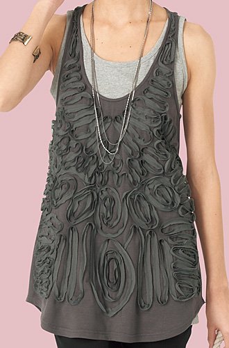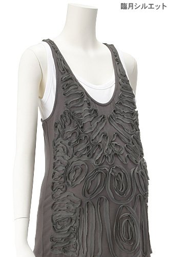 袖ぐりの広いアメリカンスリーブタイプ。 シフォンの飾りテープで立体的なデザインに