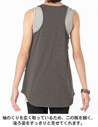 レーヨン混紡のソフトな肌触りで、肌に吸い付くようなストレッチ性も自慢です。シンプルコーデにちょっとポイントを加えたい、そんな時にぴったりのインナー。Tシャツを合わせてベスト風に、ジャケットのインとして使うと、かっちりトップスも上手にカジュアルダウンできます。