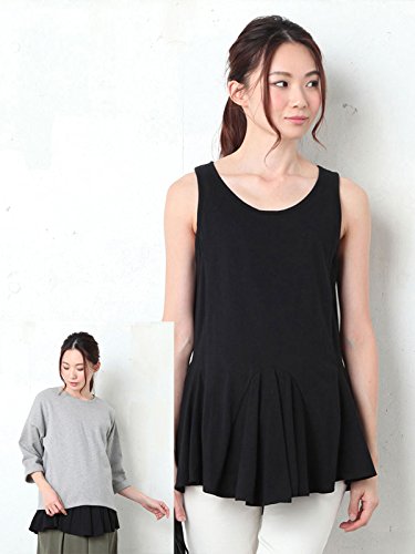 Angeliebe エンジェリーベ マタニティ 授乳口付き 裾 フレア タンクトップ 産前 産後 妊婦服 フリー ブラック 21333 21333400