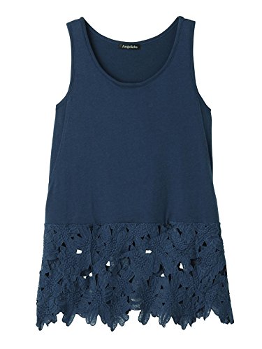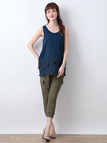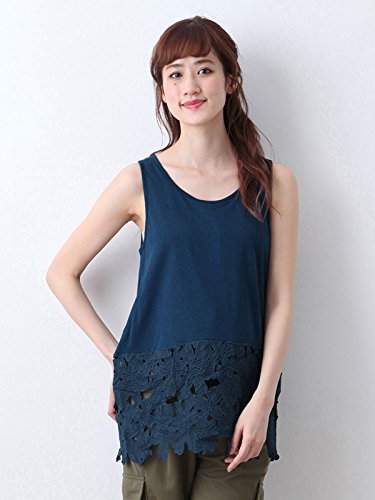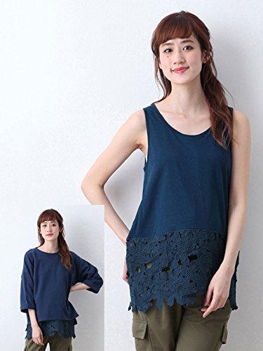 Angeliebe エンジェリーベ 授乳 口 付 裾 レース タンク トップ フリー ネイビー