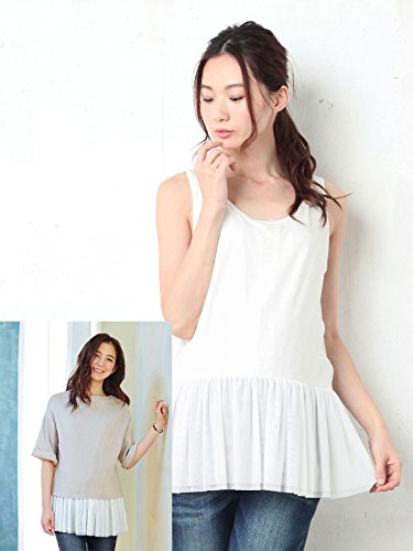 Angeliebe エンジェリーベ マタニティ 授乳口付き 裾 チュール タンクトップ 妊婦服 産前 産後 フリー オフ ホワイト 21335 21335100