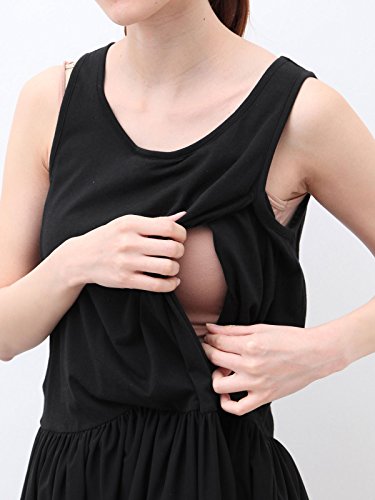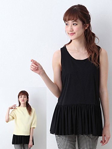 Angeliebe エンジェリーベ 授乳 口 付 裾 チュール タンク トップ フリー ブラック