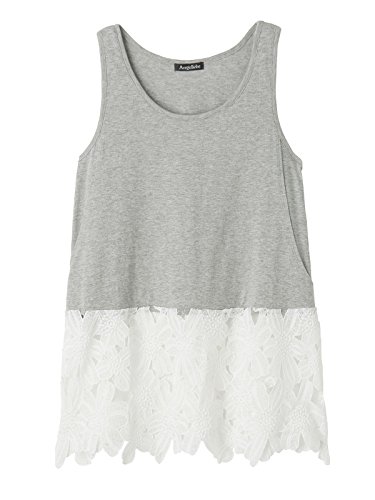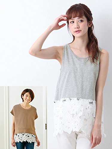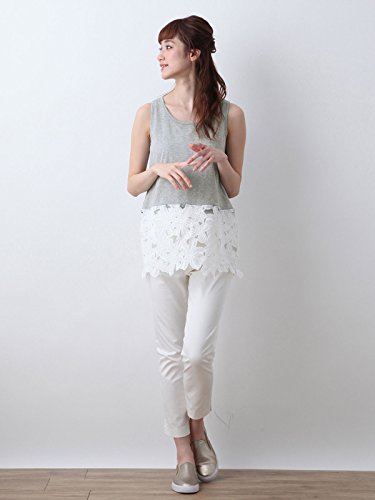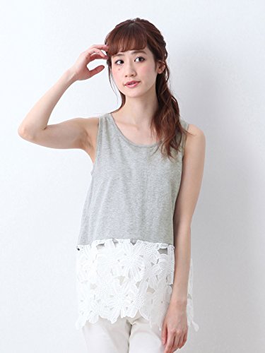 Angeliebe エンジェリーベ 授乳 口 付 裾 レース タンク トップ フリー グレー × オフ