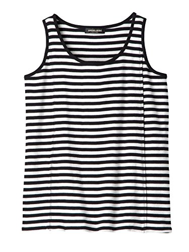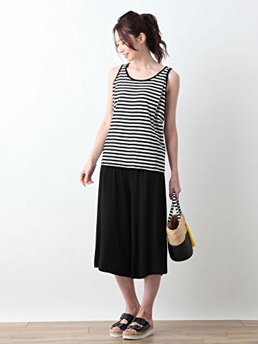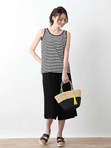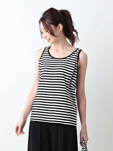 Angeliebe エンジェリーベ 産後 授乳服 綿混 やわらか フライス タンクトップ 授乳ウエア フリー ブラック × オフ ボーダー 30094 30094500