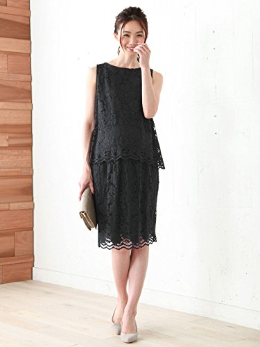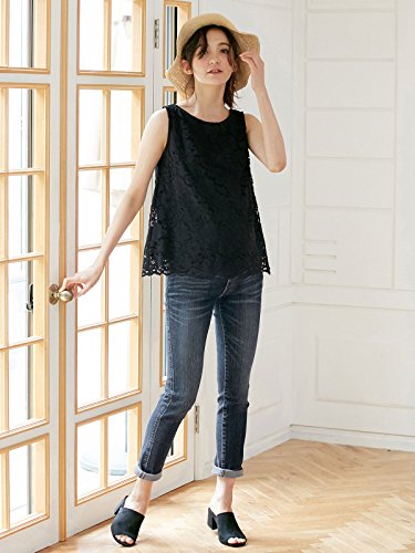 Angeliebe エンジェリーベ マタニティ 授乳口付き レース スカラップ ノースリーブ プルオーバー 妊婦服 産前 産後 M ~ L ブラック 22024 22024202