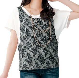 ドルマンスリーブのTシャツにタンクトップを重ねたように見えるトップス。