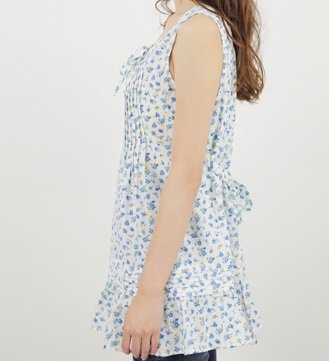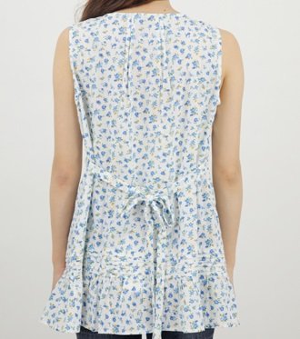 美しいフラワープリントや、前後、裾まわりにピンタックを施したこだわりのディテールで魅せるフェミニントップ。