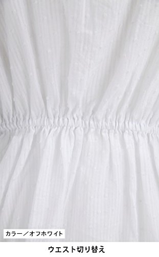- ●胸元にモチーフケミカルレース付、ループ飾りボタン付 袖口~両脇に広幅ケミカルレース付 ハイウエスト=前共布通しリボン調節可、後はゴム入り