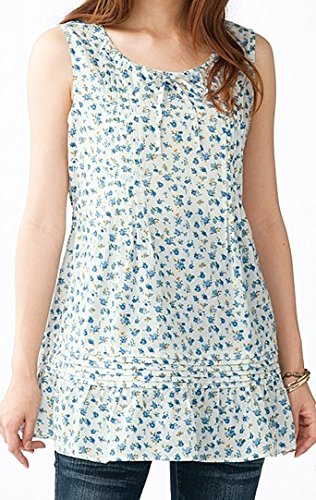 【 アウトレット 】 Angeliebe エンジェリーベ マタニティ ピンタック ブラウス トップ 妊婦服 産前 産後 花柄 9号 ブルー系 小花