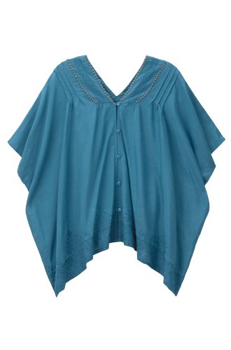 【 アウトレット 】 Angeliebe エンジェリーベ インド 刺繍 ポンチョ ブラウス フリー ブルー