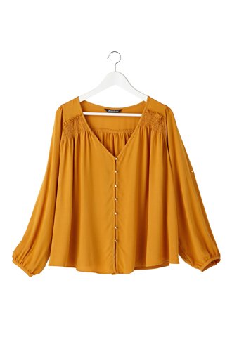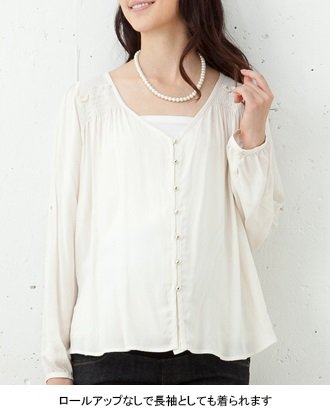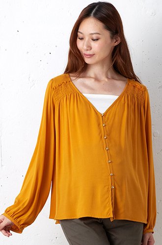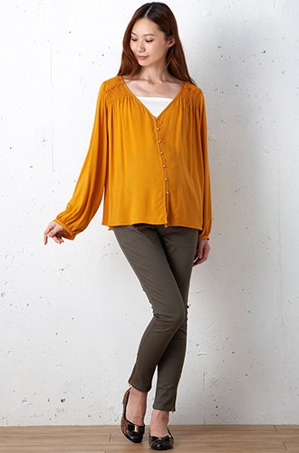 Angeliebe エンジェリーベ マタニティ ロールアップ ギャザー ブラウス 妊婦服 長袖 産前 産後 フリー マスタード 20509 20509200