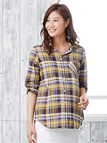 Angeliebe エンジェリーベ マタニティ チェック シャツ 妊婦服 産前 産後 長袖 9号 カラシ 系