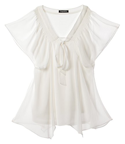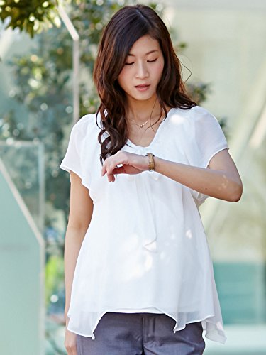 Angeliebe エンジェリーベ マタニティ 授乳口 付 ボウタイ シフォン 楊柳 ブラウス 妊婦服 半袖 9号 オフ ホワイト