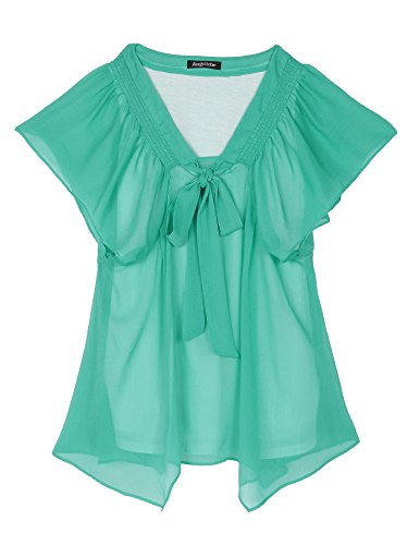 Angeliebe エンジェリーベ マタニティ 授乳口付き ボウタイ シフォン 楊柳 ブラウス 妊婦服 半袖 11号 シー グリーン 20781 20781330