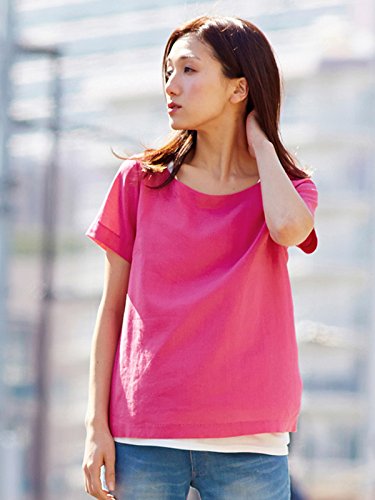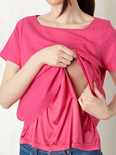 Angeliebe エンジェリーベ マタニティ 授乳口 付 レーヨン リネン T ブラウス 妊婦服 産前 産後 S ~ M フューシャ ピンク