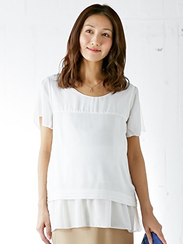 Angeliebe エンジェリーベ マタニティ 授乳口 付 フレア スリーブ ブラウス 妊婦服 産前 産後 半袖 フリー グレー