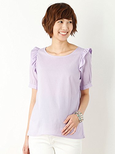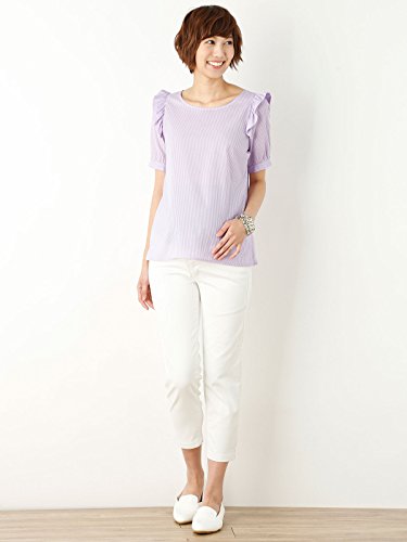 Angeliebe エンジェリーベ マタニティ 授乳口 付 肩 フリル ドビー 五分 袖 ブラウス 妊婦服 産前 産後 半袖 フリー ラベンダー