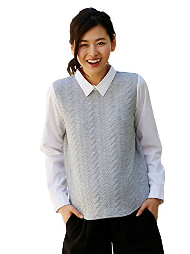 ベスト部分はジャガードカットソーで、ニット柄の立体感のあるデザイン。襟と袖には綿素材をあしらいきちんと感をプラス。