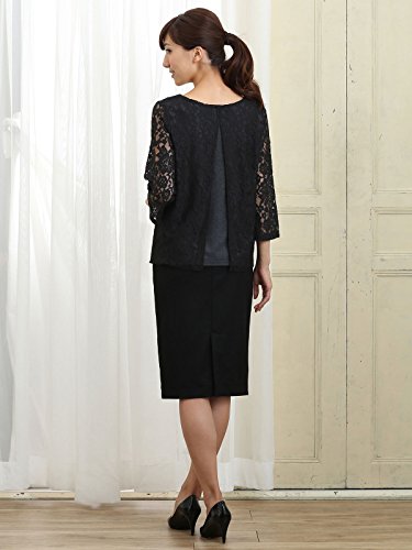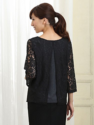 Angeliebe エンジェリーベ マタニティ 授乳口付き レース バック シャン ブラウス 産前 産後 授乳服 通勤 フリー ブラック × 杢 チャコール 20962 20962300