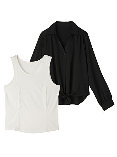 Angeliebe エンジェリーベ マタニティ トップス 授乳口付き シフォン ブラウス & 授乳 タンク トップ セット 産前 産後 妊婦服 フリー ブラック 21114 21114300