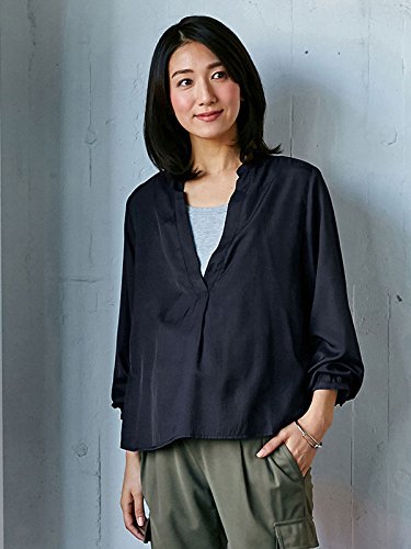 落ち感のあるとろみ素材で、通勤用にもぴったりなエレガントシャツに