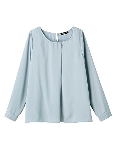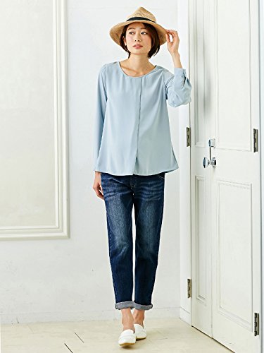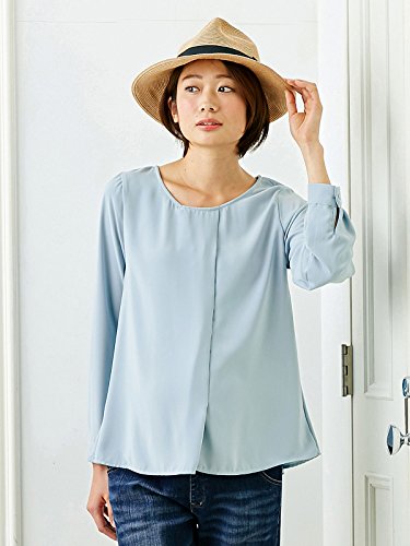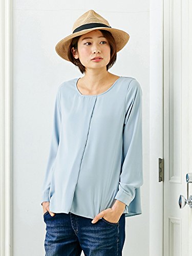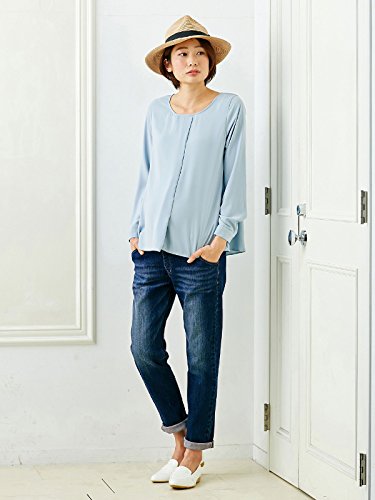 Angeliebe エンジェリーベ マタニティ トップス 授乳口付き クルー ネック タック ブラウス 妊婦服 産前 産後 長袖 M ~ L ブルー 21313 21313202