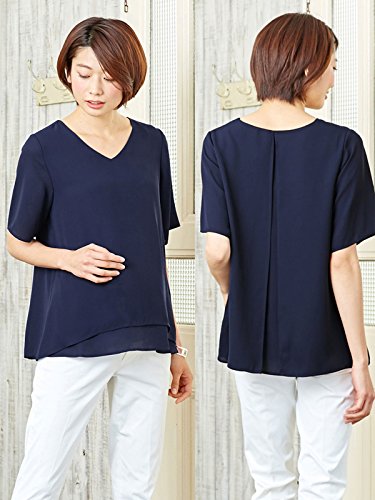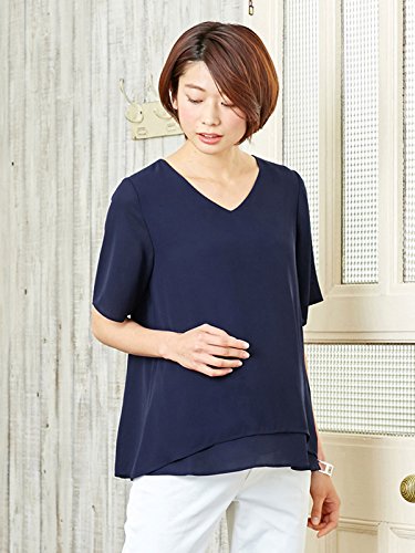 Angeliebe エンジェリーベ 授乳 口 付 レイヤード シフォン V ネック トップス M ~ L ネイビー