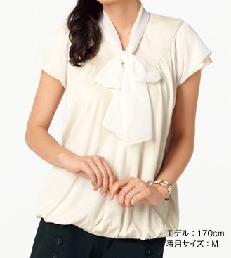 【 アウトレット 】 Angeliebe エンジェリーベ マタニティ 授乳 用 ボータイ トップ 妊婦服 産前 産後 半袖 M オフ ホワイト
