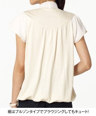 ブラウス風トップスがやわらかい印象