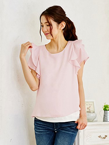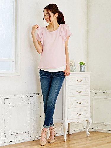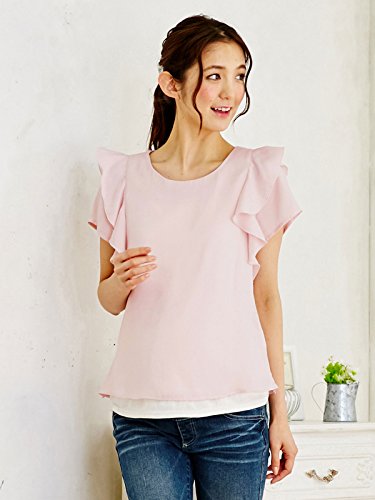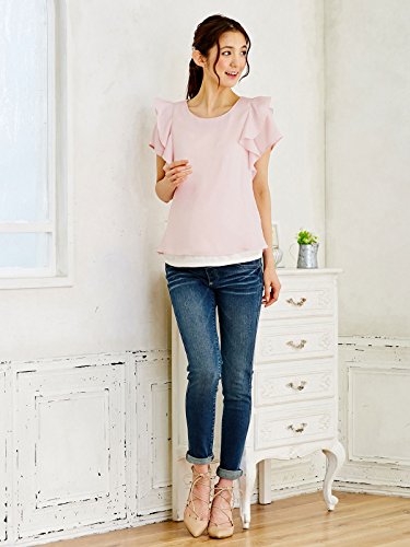 Angeliebe エンジェリーベ マタニティ 授乳口 付 デシン 肩 フリル ブラウス 妊婦服 産前 産後 半袖 フリー ピンク