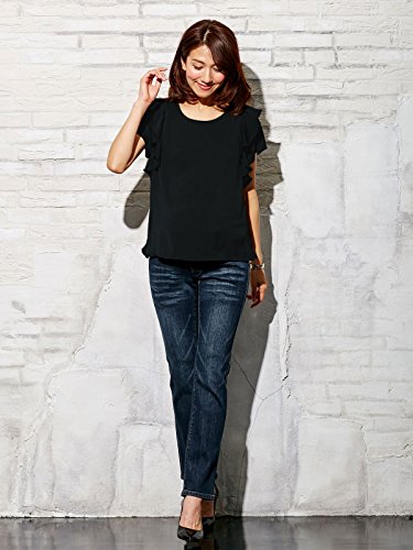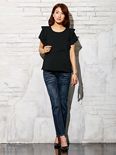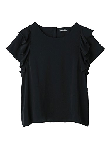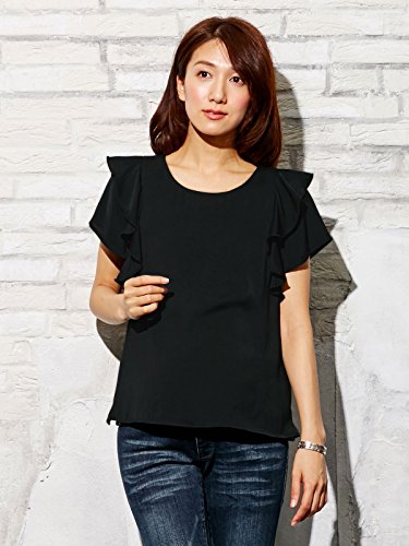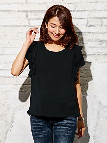 Angeliebe エンジェリーベ マタニティ 授乳口付き デシン 肩フリル ブラウス 妊婦服 産前 産後 半袖 フリー ブラック 21441 21441300